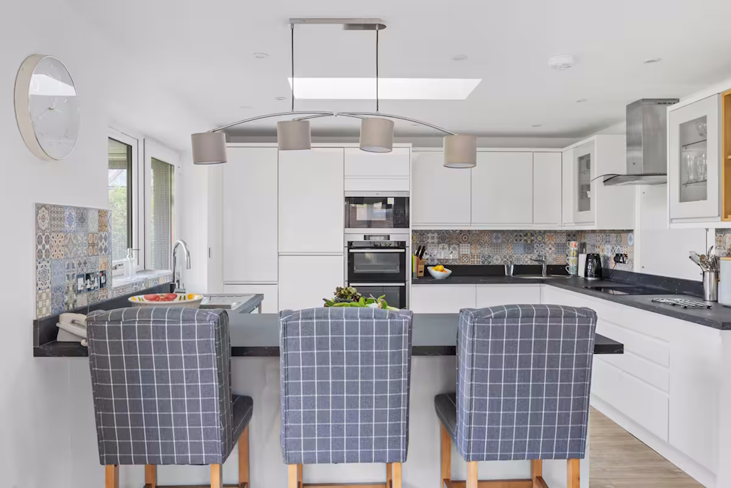 Cook, chat, and sip in style – this fully equipped kitchen with breakfast bar is perfect for lazy brunches and evening tipples.