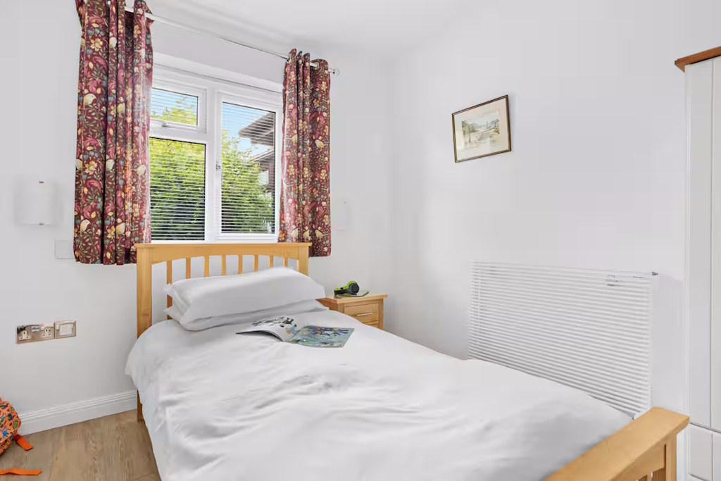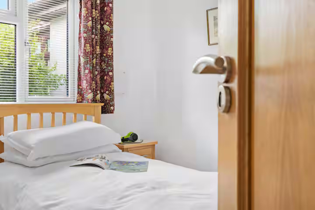 Bright and tranquil, this single bedroom offers comfort and calming views of the garden.
